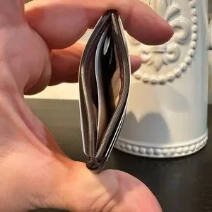 Features: 4 exterior credit card slots, Open middle compartment, Metal pinmount with spade logo