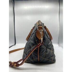The Dooney & Bourke Quilted Black Satchel is a stylish and versatile handbag perfect for women who appreciate quality craftsmanship and unique design. The satchel features a nature-inspired theme with a quilted finish and fringe accents, adding a touch of sophistication to the classic black leather exterior. With its top handle style, this bag is both practical and fashionable, making it a must-have accessory for any modern woman on the go.