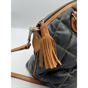 DOONEY and BOURKE Quilted Black Satchel Natural Leather & Fringe Pull