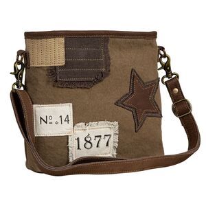 Myra Bag Handmade Patchwork Shoulder Bag Upcycled Canvas & Cowhide Leather