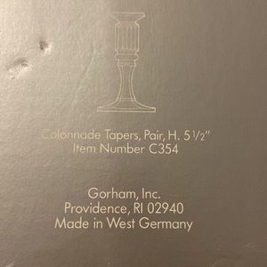 Vintages Gorham Original made in West Germany two Colonnade Tapers Full Lead Crystal brand new comes in original box and certificate how to take care. (H8)