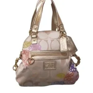 Add a burst of color to your wardrobe with this Coach F22323 Poppy Daisy Floral Satchel / Crossbody Bag — a rare and collectible style in excellent condition.