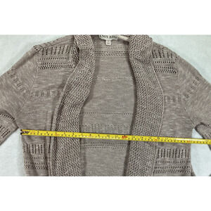Knox Rose Cardigan SZ Large Open Front Crochet Eyelet Minimalist Bohemian Beige