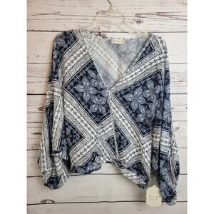 Lot of 2 NWT Altar'd State Blue Pink Floral Boho Crop Top Women's Size Large
