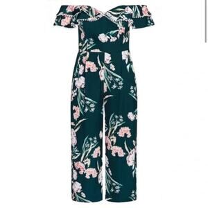 City Chic Fresh Field Floral Off the Shoulder Crop Wide Leg Jumpsuit 18, 20 New