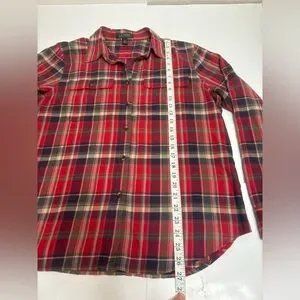 Lauren Ralph Lauren red plaid flannel shirt, 100% cotton, super soft! Button up, Very classic heritage look. Has the pockets on the chest, and cuff button to roll up the sleeves.