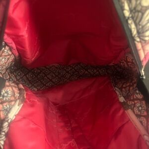 Stylish floral quilted backpack with vibrant pink and cream tones. Perfect for everyday use.
