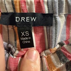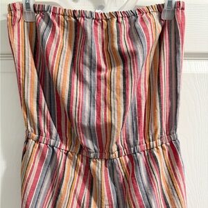 Anthropologie DREW Pink and Blue Strapless Sundress with Slits Linen Cotton