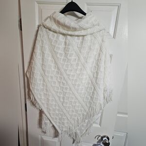 Mixit Womens One Size Cream Acrylic Knit Hooded Poncho Boho Cottagecore Layering