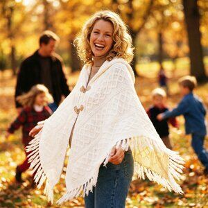 Fit: One Size; open poncho fit with lots of layering flexibility