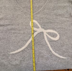 American Eagle Outfitters Light Gray V-Neck Sweater with Cream Bow