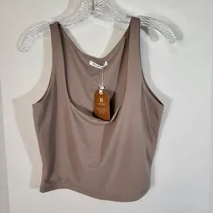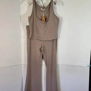 Reoria 2 Piece Loungewear Set Square Neck Flare Leg Size XL Tan NEW