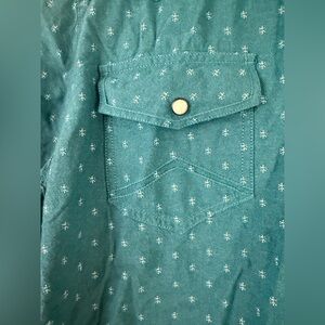 Upgrade your casual style with this teal button-down shirt. Ideal for laid-back outings.