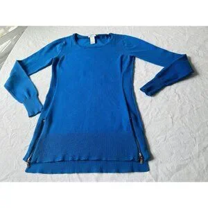 Cache Women’s XS Long Sleeve Sweater Royal Blue Ribbed Gold Zipper Stretch