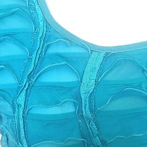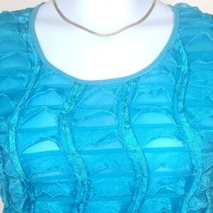 Top pull over Teal sparkly satin ribbon trim short sleeve new directions Medium