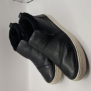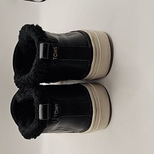 TOMS slip on sneaker/ booties faux fur trim. 7.5 womens