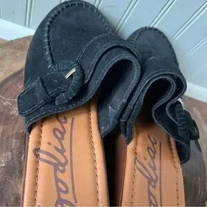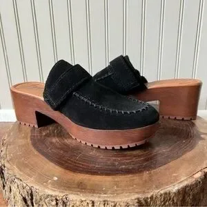 Zodiac Raine Suede Black Wood Heel Slip On Clog Mules