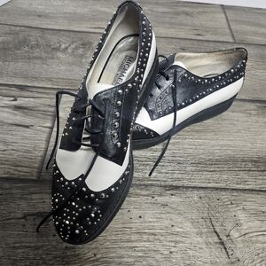 Michael Kors Black White Wingtip Oxfords Studded Party Menswear Moonwalk Theater