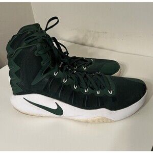 The product is a pair of Nike Zoom Hyperdunk 2016 basketball shoes in size 16.5. These high-top sneakers are designed specifically for men and are part of the Nike Hyperdunk product line. The shoes are released in 2016 and come in a stylish green color, making them a great choice for basketball players looking for performance footwear. With a focus on athletic design and basketball activity, these sneakers offer both style and functionality on the court.