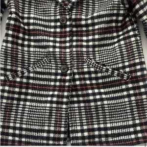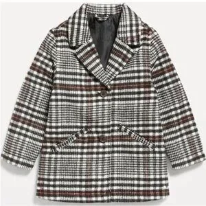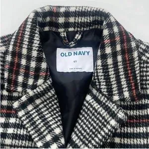 Old Navy Plaid Pea Coat Girls Black White Red Size 5T NWOT