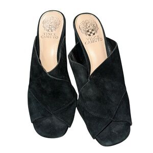 Vince Camuto Black Suede Heeled Mules