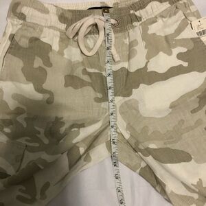 🧡 XS 🧡 NWT Anthro Pants Drawstring Waist Neutral Camo Cropped Linen