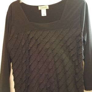Harve Benard Top/Blouse Black Large Diagonal Ruffles Tiers Vintage