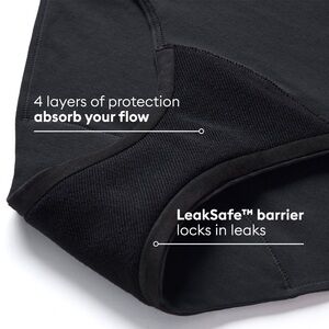 Black underwear with LeakSafe barrier. Provides 4 layers of protection.