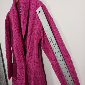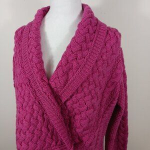 NWOT Aran Crafts Ireland 100% Merino Wool Long Cardigan Pink, SZ Large Lagenlook