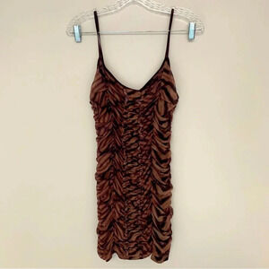 Urban Outfitters Leopard Print Ruched Mini Dress L
