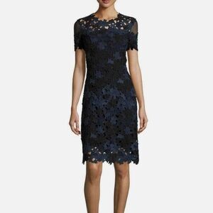 Elie Tahari Ophelia Lace Sheath Dress in Black/Blue size 4