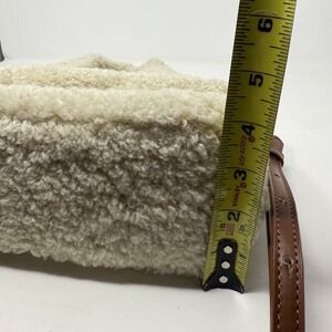This Shelli Segal by Laundry tote bag purse is a must-have for anyone looking for a stylish and cozy accessory. The cream colored exterior is made of faux fur and features a cute teddy bear design. The bag is lightweight and lined with a wheat colored material, making it perfect for carrying all your daily essentials.