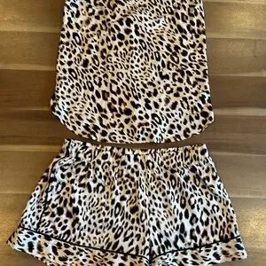 Stylish leopard print cami and shorts set. Like new condition. Fabric tag doesn’t say material but feels satin. Victoria’s Secret.