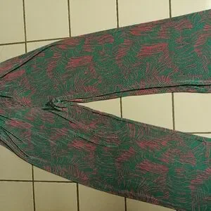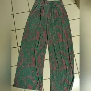 Elevate your style with these vibrant wide leg pants, featuring a striking green and pink pattern. Perfect for any occasion.