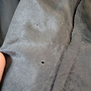Snag in the material; tiny holes in the lining.