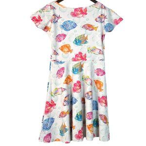 COW COW Girl's White Ocean Fish Beach Print Short Sleeve Skater Dress Size Small