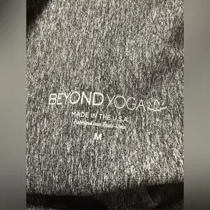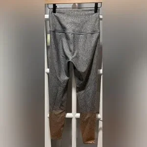 Beyond Yoga’s high-waisted midi is crafted from Sport Flex performance fabric, featuring 4-way stretch and an ombre speckled motif made from metallic foil. This technical fabric exudes a luxurious and futuristic shine, elevating the overall aesthetic of the piece.