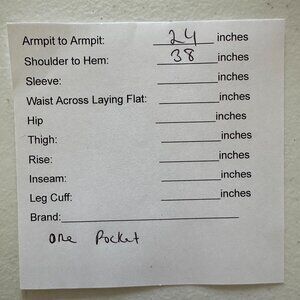 • Measurements (approx.): Bust 48" (24" flat) • Shoulder to Hem 38"