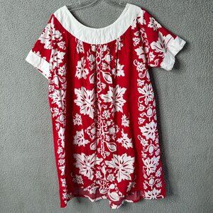 Surf and Shore Hawaii Red White Floral Hawaiian Dress Pockets Sz L-XL Beach Vaca