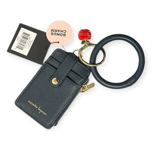 Adorable card holder with keychain and charm. Features a sleek design. Perfect for organizing essentials. This is in excellent condition, brand new with tags!