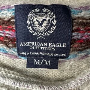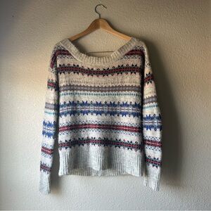 American Eagle Light Grey Striped Sweater; Off the shoulder style, super soft & warm. Aztec vibes.