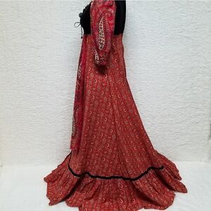 Rare Vintage 1970s Rags by Kressandra Red Paisley Black Velvet Cottagecore Victorian Prairie Dress.