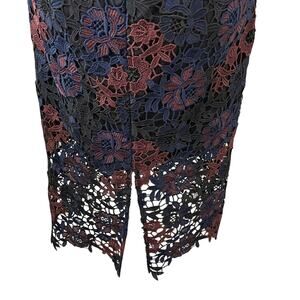 Topshop lace pencil midi skirt. Black blue burgundy. Faux leather waist. Sz 4P