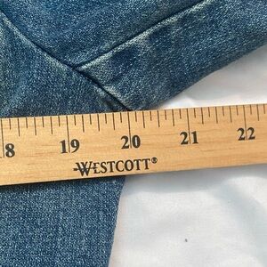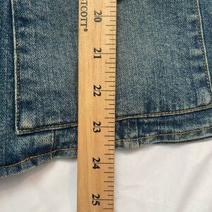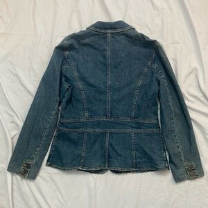 Stylish blue denim collared jean jacket blazer perfect for casual outings. Features a classic design with button closures. Ideal for layering in any season.