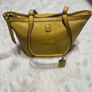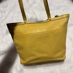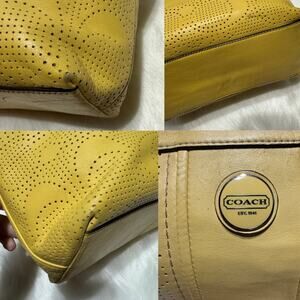 B1.COACH F21941 Yellow Perforated Leather Tote Shoulder Bag GUC