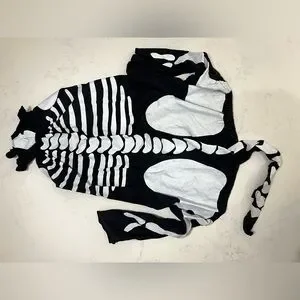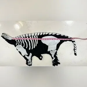 Transform your pet into a spooky skeleton with this fun Halloween costume. The black and white design is perfect for festive occasions.