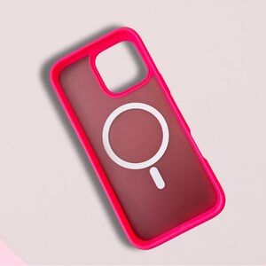 Protect your phone with this stylish pink case featuring MagSafe compatibility. Designed for durability and a sleek look.