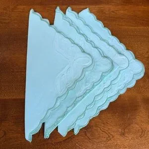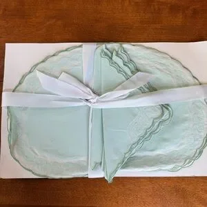 Vintage Embroidered Napkins & Placemats in a soft seafoam green- set of 4
