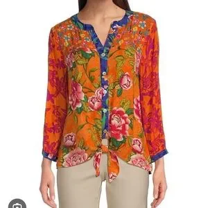John MarkFloral Button-Down Tie-Front Top - Plus - Orange Print
