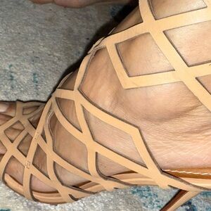 Elevate your look with these chic tan strappy heels. Perfect for adding a touch of elegance to any outfit.